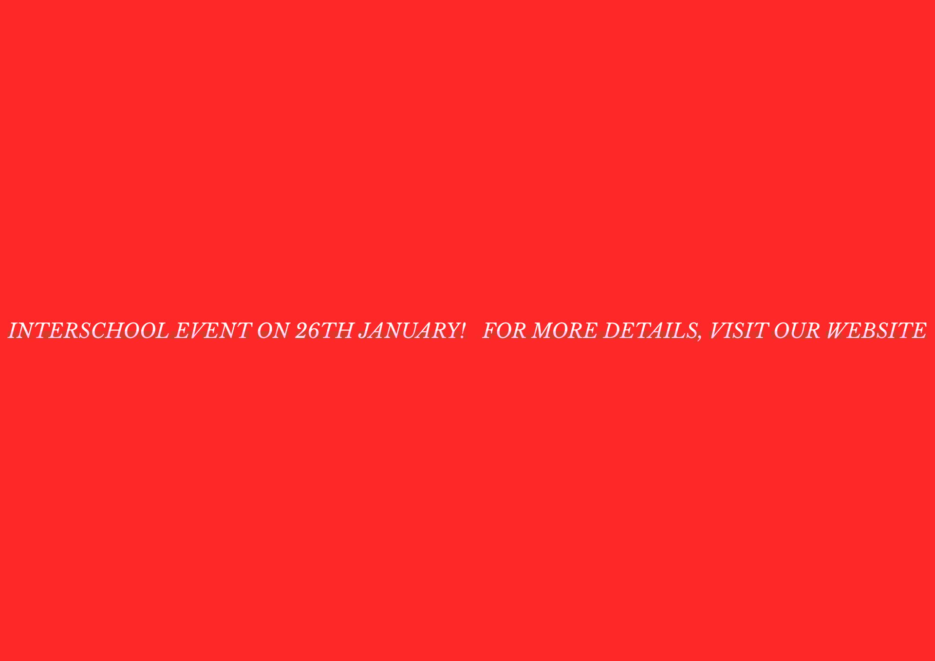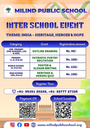 Get ready for an exciting Interschool Event happening on 26th January, packed with fun, creativity and healthy competition across multiple categories!