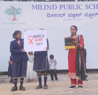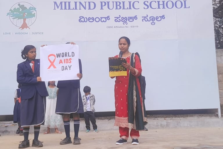 Milind Public School observed World AIDS Day with an awareness-driven session aimed at educating students about health, empathy and social responsibility. The program highlighted the importance of awareness, prevention and breaking the stigma associated with HIV/AIDS. Through informative presentations and discussions, students were encouraged to develop compassion, understanding and a proactive approach to community well-being.