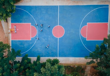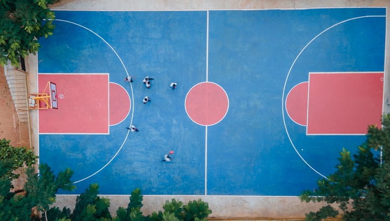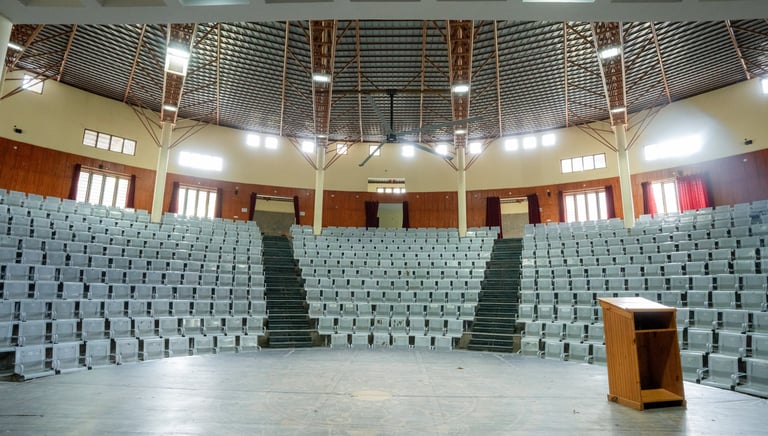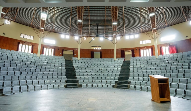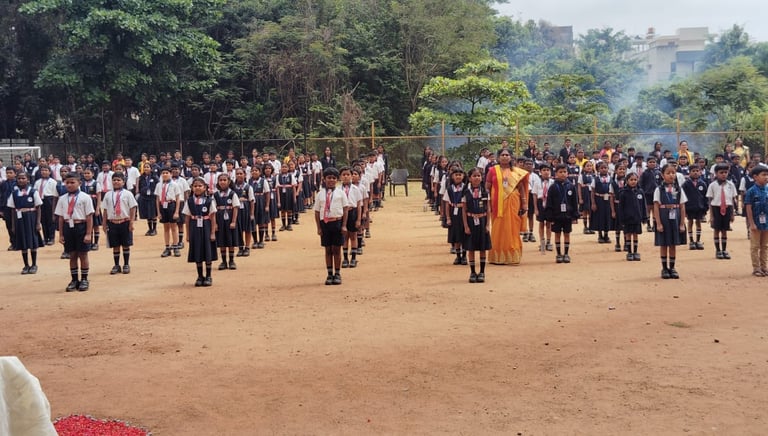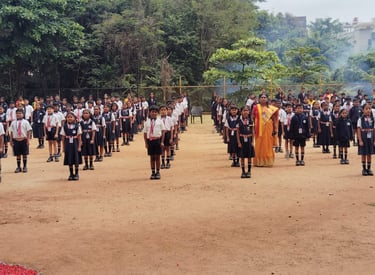 A vibrant ground where students gather for assemblies and engage in sports activities.