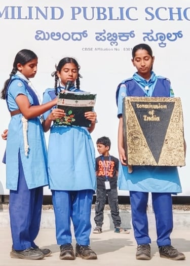 Constitution Day was observed at our school with great respect and pride. During the morning assembly, students and teachers united to take the Constitutional Oath, reaffirming their commitment to its core values. The principles of justice, liberty, equality and fraternity were emphasized, helping students develop a deeper understanding of their responsibilities as citizens of India. The observance served as a meaningful reminder of the ideals that guide our nation.