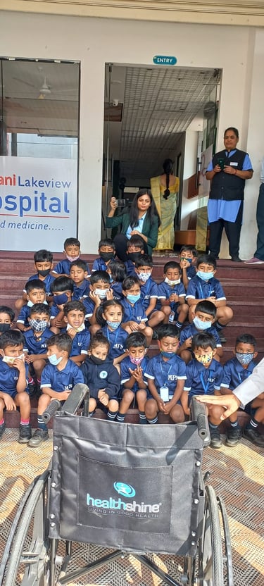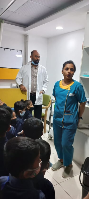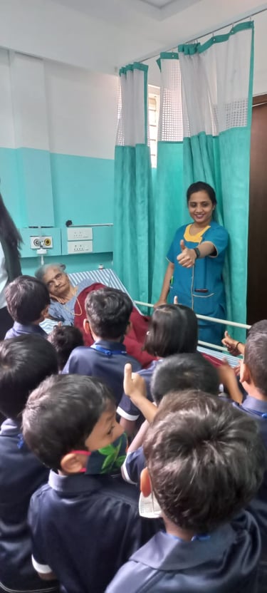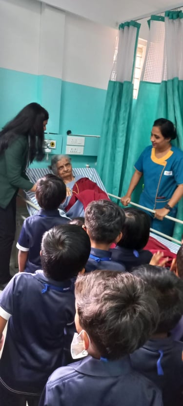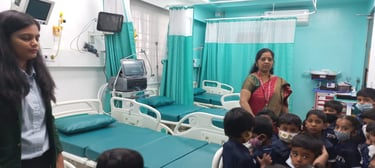 Our pre-primary students visited a nearby hospital as part of an educational exposure activity to familiarize them with the hospital environment and the roles of doctors, nurses and healthcare staff. The children observed different sections of the hospital, learned basic concepts of health, hygiene and caring for others and were introduced to medical technology, instruments and the radiology section in a simple, child-friendly manner. The warm interaction with hospital staff made the visit informative, engaging and enjoyable for the students.