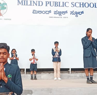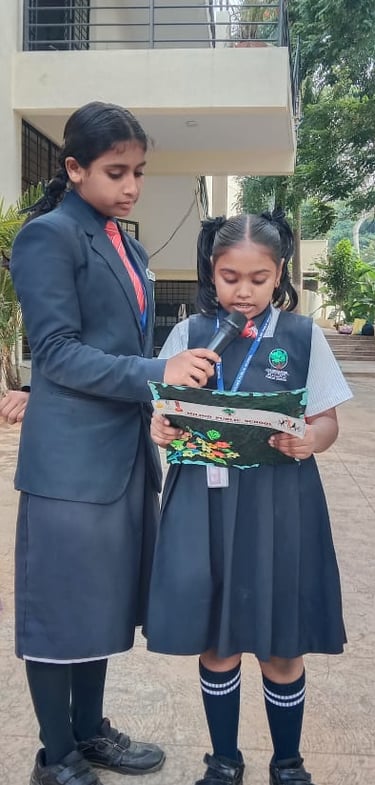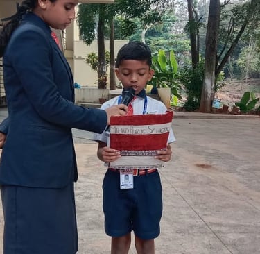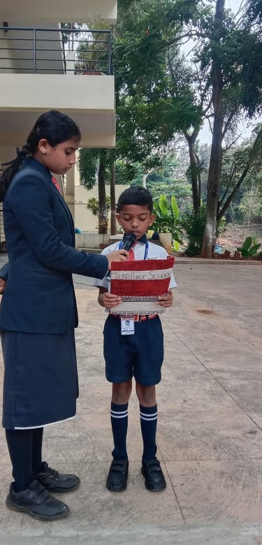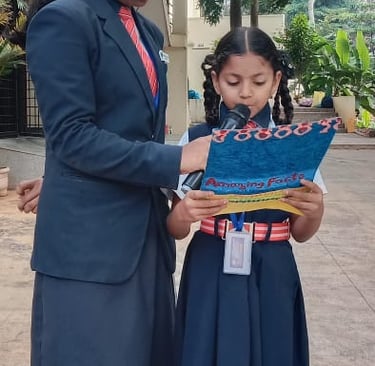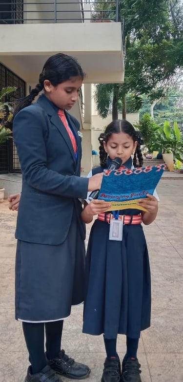 Every Friday, the school conducts a Special Assembly designed to enrich students’ knowledge, confidence and values. The session includes a thought for the day, amazing facts, current news updates, a new vocabulary word and a short pep talk to inspire students. Additionally, energizing exercises are conducted to promote positivity and togetherness. This weekly assembly helps students build communication skills, stay informed and begin the day with motivation and discipline.