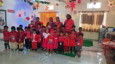 The Pre-Primary Section celebrated Christmas and Red Day with great enthusiasm, joy and festive spirit on 12/12/2025. The classrooms were attractively decorated with balloons, stars, streamers and vibrant red accents, creating a warm and cheerful Christmas ambience. Children arrived dressed in bright red attire, adding colour, excitement and charm to the celebration.