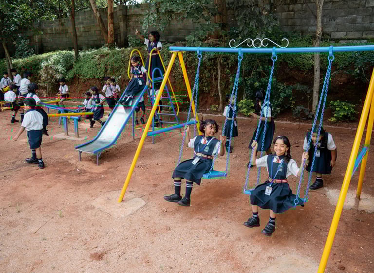 Nestled amidst nature, our serene campus offers a vibrant learning environment with spacious playgrounds, a basketball court, a biodiversity park and a tranquil lake graced by the Buddha statue. With an inviting auditorium and peaceful surroundings away from city noise, students learn with love, curiosity and a deep love for nature.