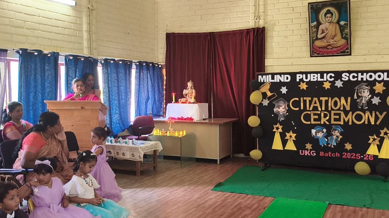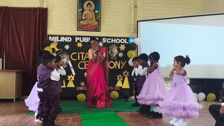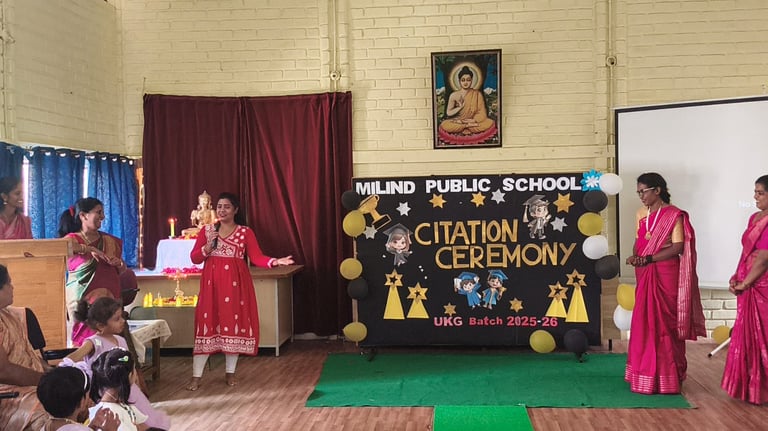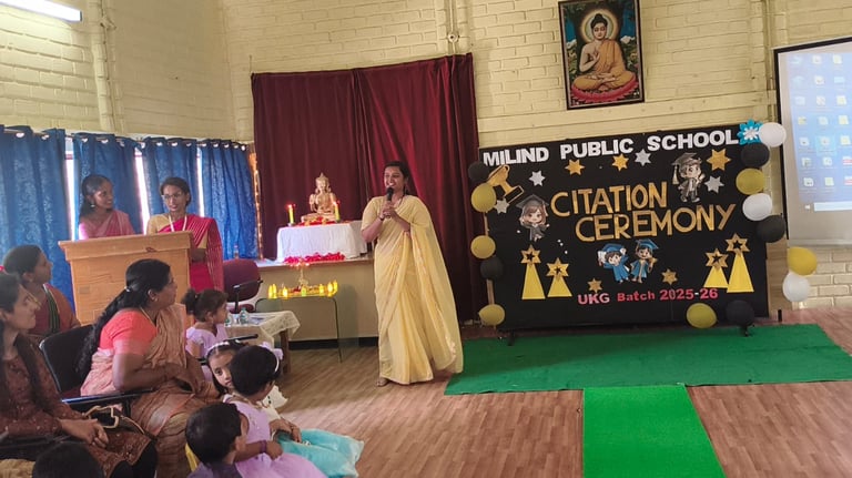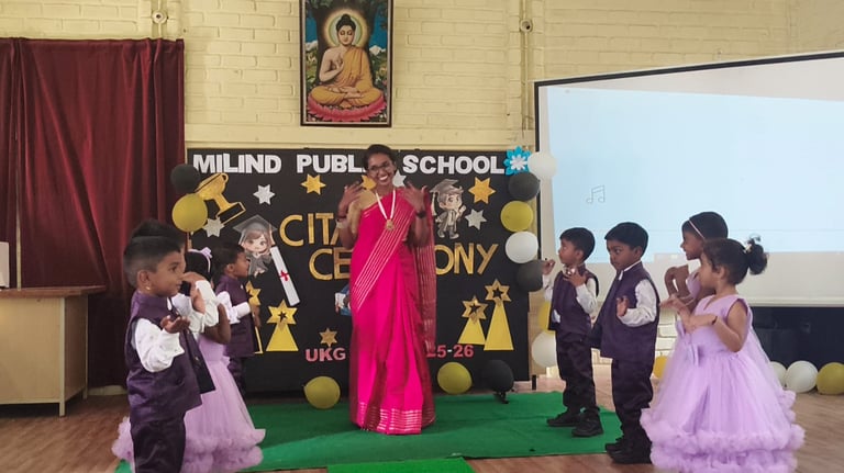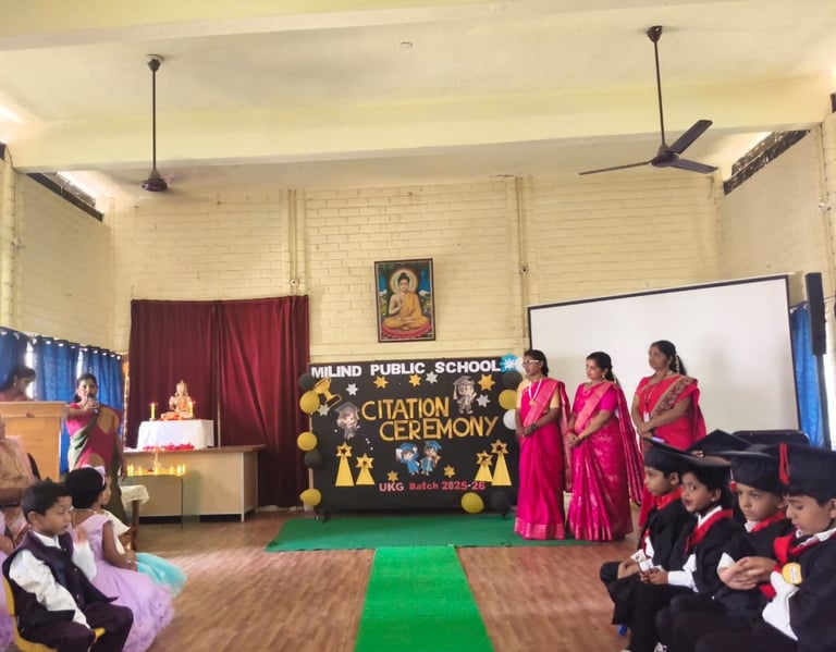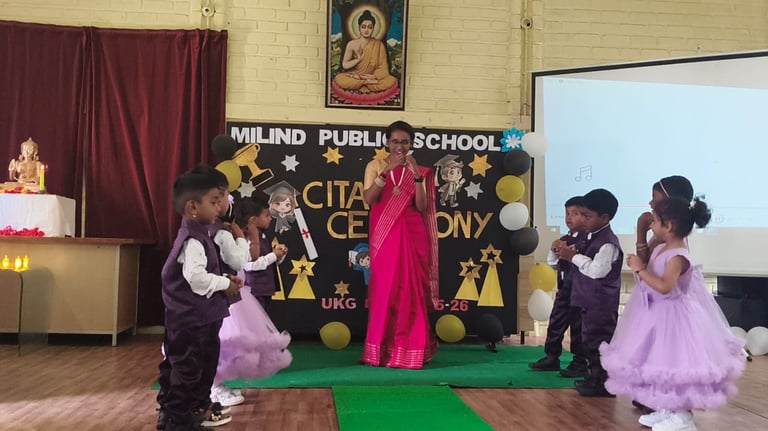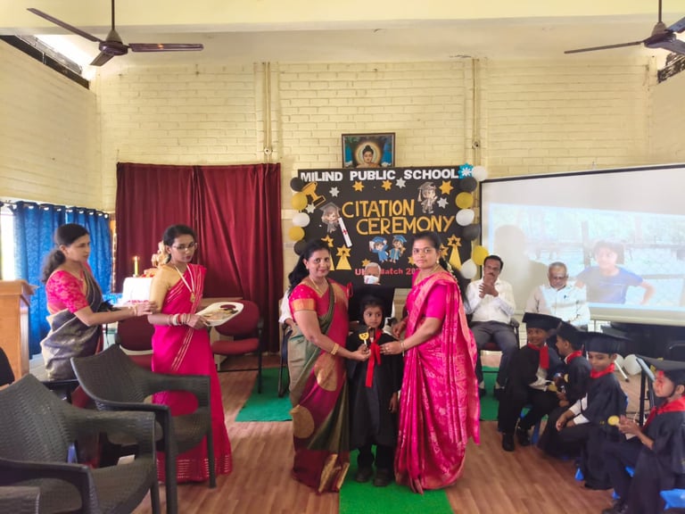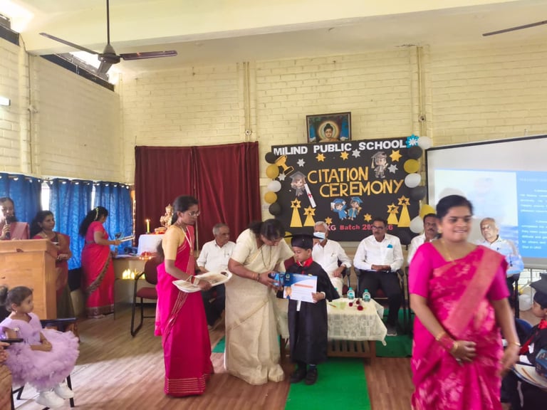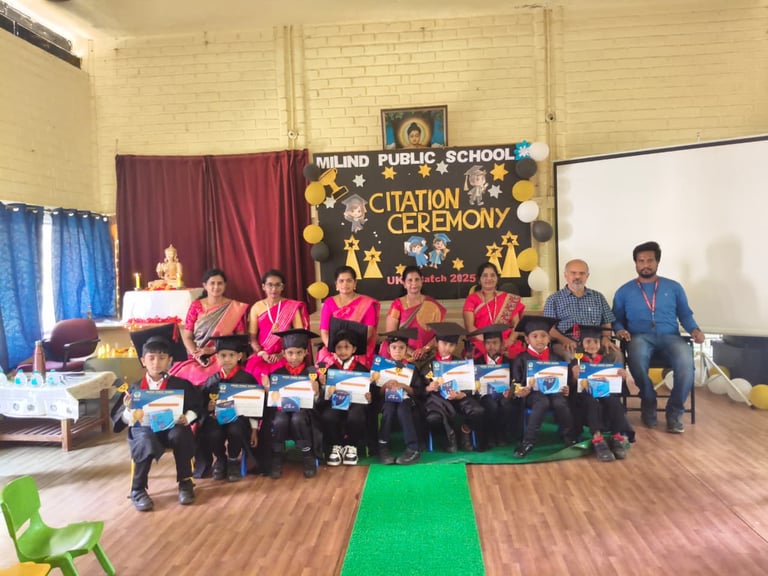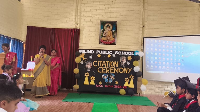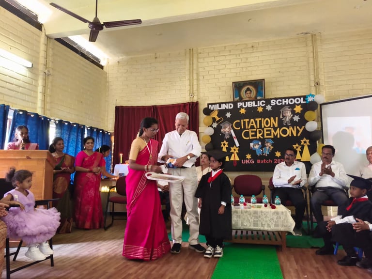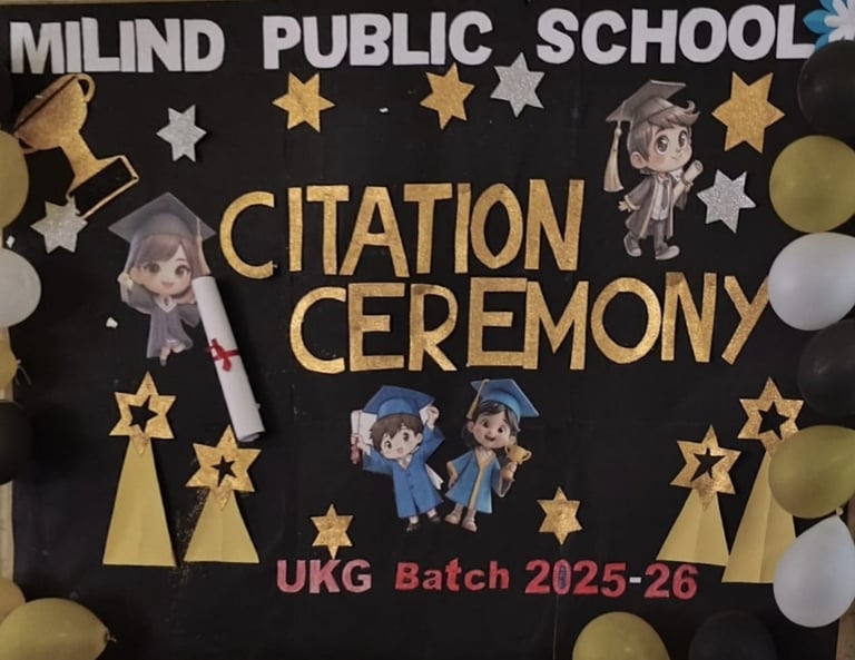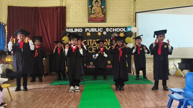 The UKG Citation Ceremony was celebrated with great joy and pride on 7th March. The young graduates marked an important milestone in their early learning journey as they confidently stepped forward to begin their primary school years. Dressed in graduation attire, the students received their certificates and showcased their talents through delightful performances. The event was a proud moment for the students, teachers and parents as it celebrated growth, learning and new beginnings.
